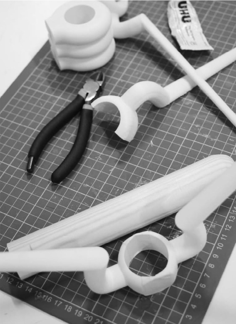 Bringing the sketch to life started with thick card, and I tried to mimic the shape using an acrylic sheet, bending it with a heat gun. However, it didn’t look the way I wanted. I then modeled it and 3D-printed the arms along with the mount that held all the pieces together.